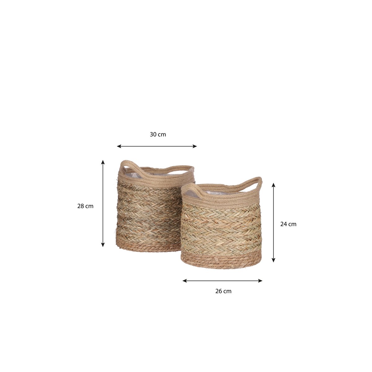 Met de Anne plantenmanden van Mica Decorations geef je in no time een natuurlijke draai aan het interieur. De manden zijn namelijk gemaakt van zeegras en hebben een hele pure, natuurlijke uitstraling. De strengen zeegras zijn daarnaast zo in elkaar gevlochten dat de manden een trendy visgraatmotief krijgen. Daarnaast passen ze door de neutrale kleur in elk interieur. Zet er een plantje in of berg er wat kleine dingetjes in op. Deze set bestaat uit twee stuks zodat je er nog alle kanten mee op kan. De grote variant heeft een afmeting van H28 x Ø30 cm en de kleine is H24 x Ø26 cm.