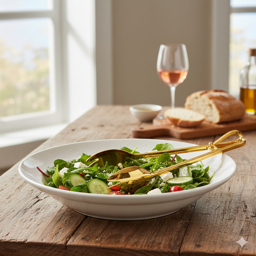 Discover our elegant salad clip, the ideal ally for your friendly meals. Practical, it allows you to mix, serve and taste your salads with ease. Its design combines aesthetic and functionality, to sublimate your daily meals as well as your reception tables. An essential to bring a touch of style and practicality to each service.