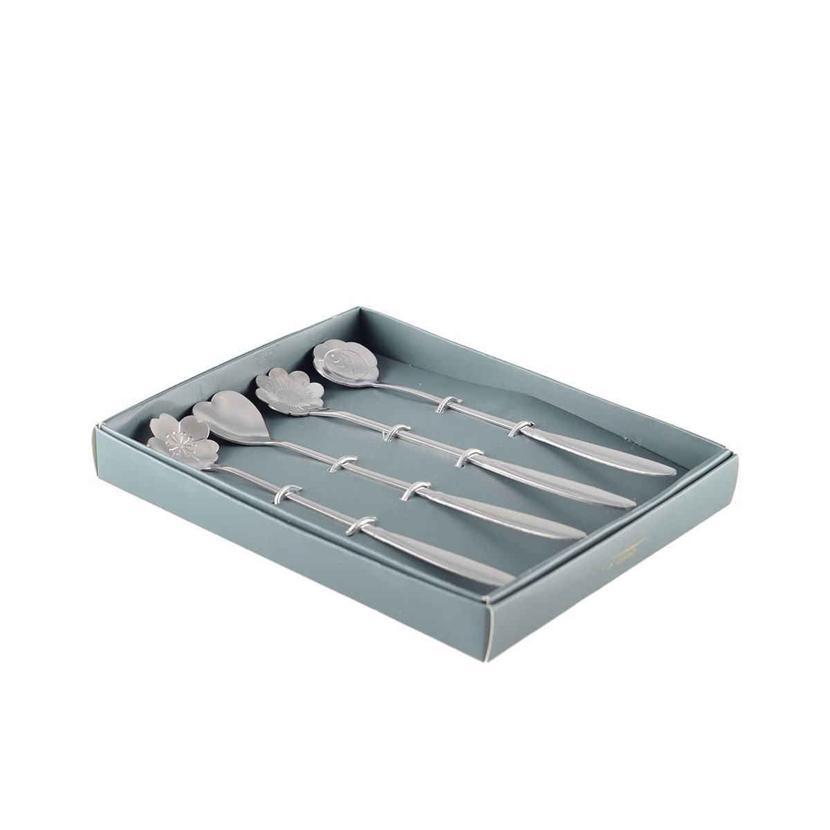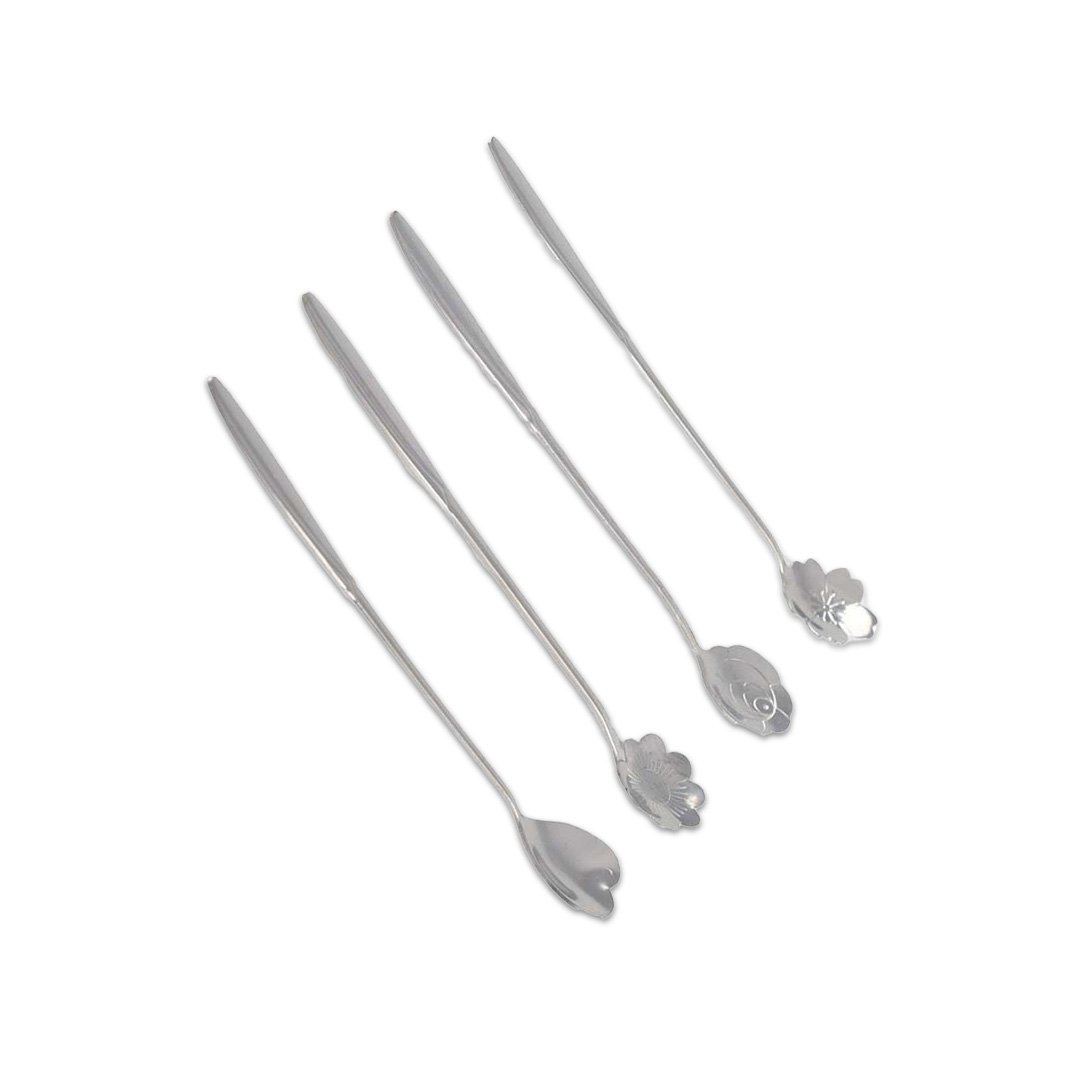152201 - Lot of 4 long flower silver spoons - Aulica