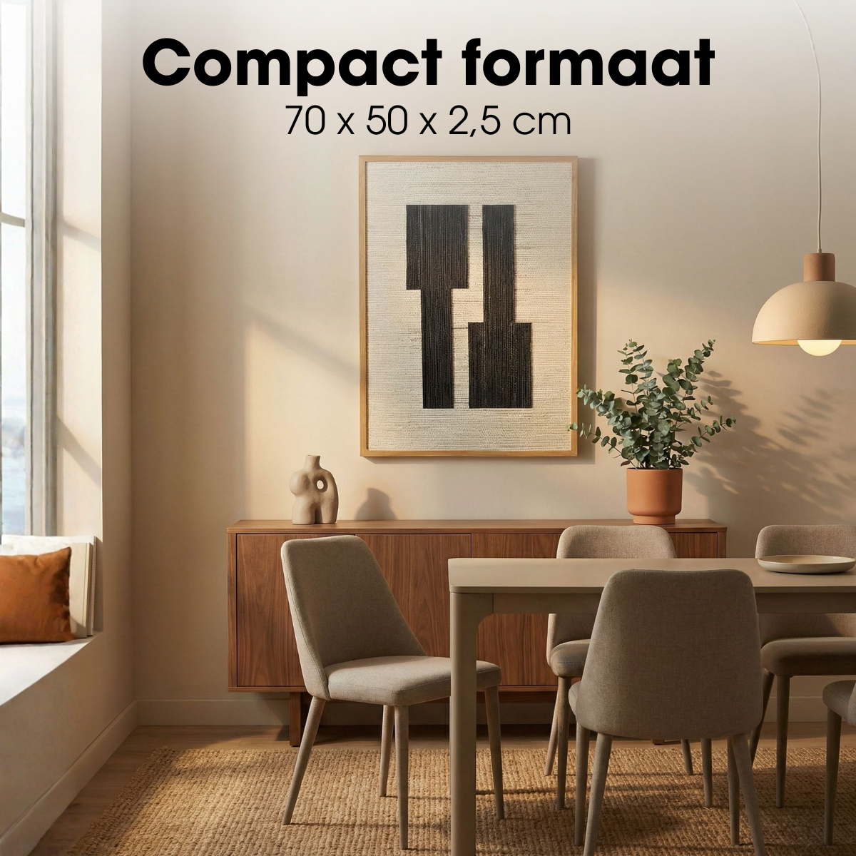 Give your interior a powerful and graphic accent with this black wall decoration from Mica Decorations. The wall object has a sleek pattern of black surfaces on a light background, which provides a strong contrast and a striking design. The warm frame gives the whole a soft frame and makes the wall decoration easy to combine with modern, industrial and minimalist living styles.